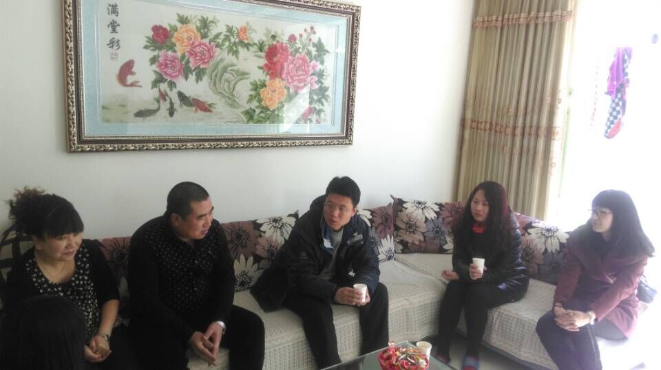 为了进一步提高外国语学院学生管理工作的针对性和时效性,构建大学生思想政治教育工作中学院、家庭和学生一体化教育模式,搭建学校和家长的沟通桥梁,外国语学院在寒假期间陆续开展了省内多地的家访工作。2015年3月4日,外国语学院党委副书记兼副院长李海波带领学院团委书记赵跃、辅导员王晗、董清源在沈阳地区开展寒假家访活动,走访对象为2014级英语四班王宇晗同学。