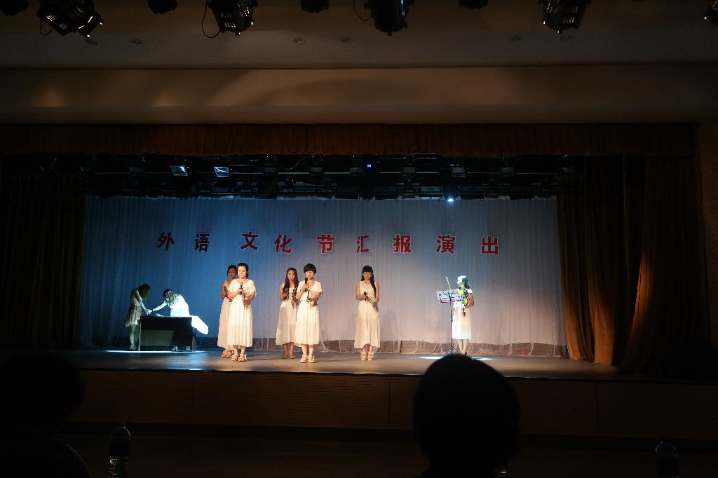 汇报演出在英语、日语、俄语、德语、法语各系同学共同演唱的不同语言版《Let it go》歌曲中拉开了帷幕。之后,外国语学院党委书记武巍作了精彩致辞,她代表外国语学院全体教职工对同学们在夏季学期取得的优异成绩表示祝贺,希望同学们今后能够学以致用,更多地通过丰富多彩的实践活动,不断提高自身专业能力和综合素质。