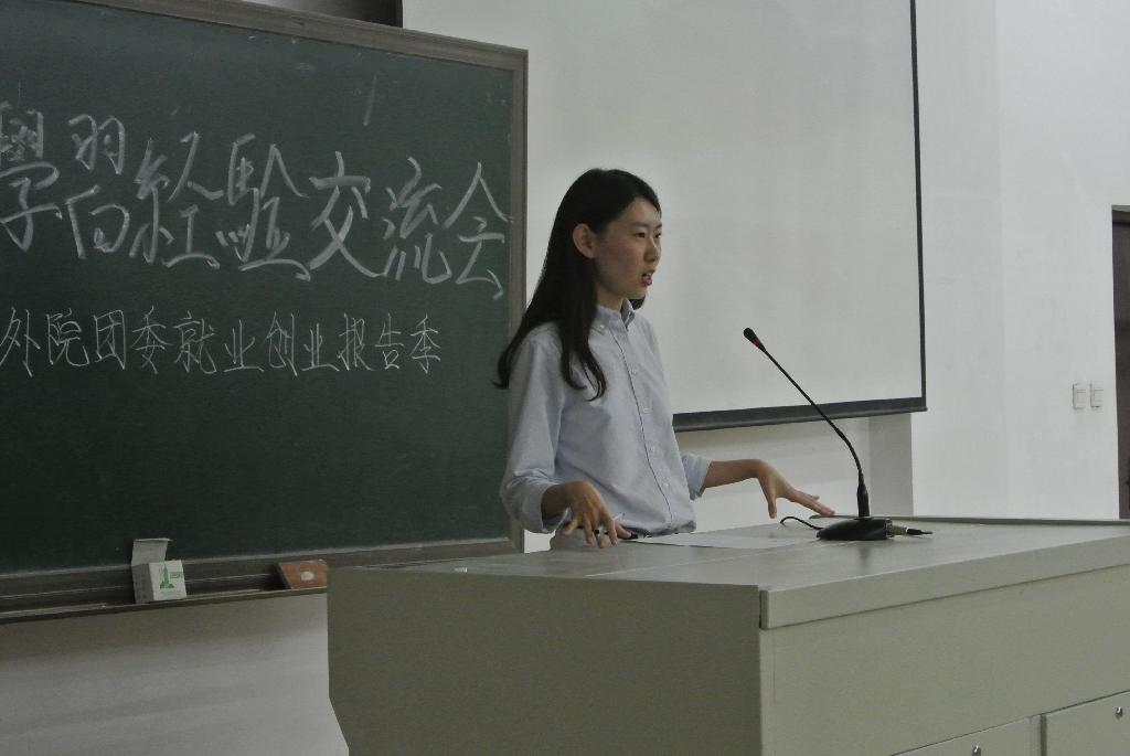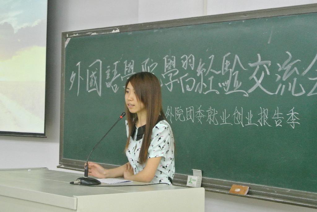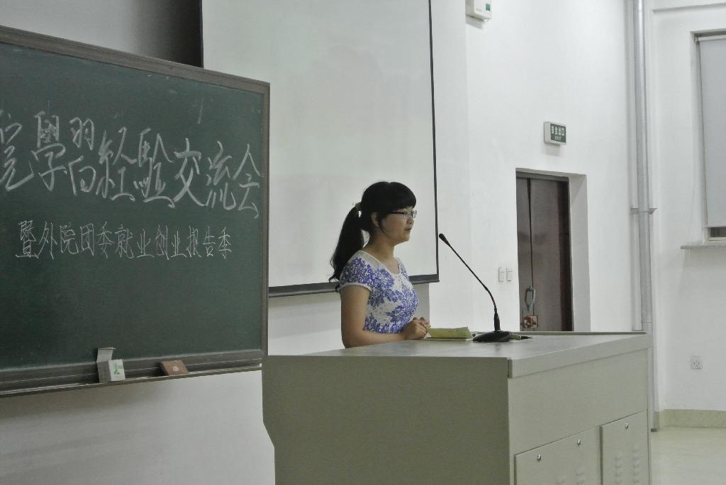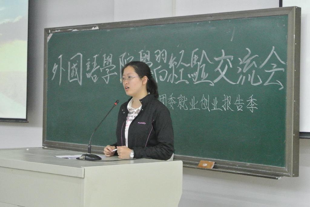 2014年5月22日晚6时,外国语学院在方圆楼202教室举办了团委就业创业报告季系列活动之“保研考研经验交流会”,2013级辅导员王晗以及学院140余名同学到场参与本次活动。