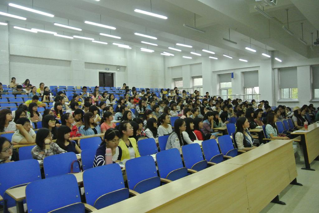 2010级五名成功保研、考研的同学分别做了精彩的学习经验分享,她们是俄语专业的贺金华(考研至上海外国语大学)、英语专业的张怿陶(保研至清华大学)、日语专业的刘浩(保研至日本富山大学)、英语专业的刘雅妮(保研至北京航空航天大学)和英语专业的孙菡(考研至同济大学口译同声传译专业)。首先,贺金华同学进行发言,强调了基础知识在语言学中的重要性,以幽默诙谐的语言告诫同学们认真做好听说读写四个方面练习的重要性。之后,张怿陶同学详细讲述保研的具体过程以及保研前后所需要的准备,让大家对保研考研有了更深入的了解。接着,即将奔向日本求学的刘浩为同学们提供了锻炼口语及听力的有效渠道,如中国国际放送及NHK等方法。最后,刘雅妮和孙菡同学进行了经验交流,发言中介绍了各高校暑假夏令营的优势所在,并以此为契机,更进一步简述几所具有代表性的高校考研基本形式,加深了同学们对此的理解。