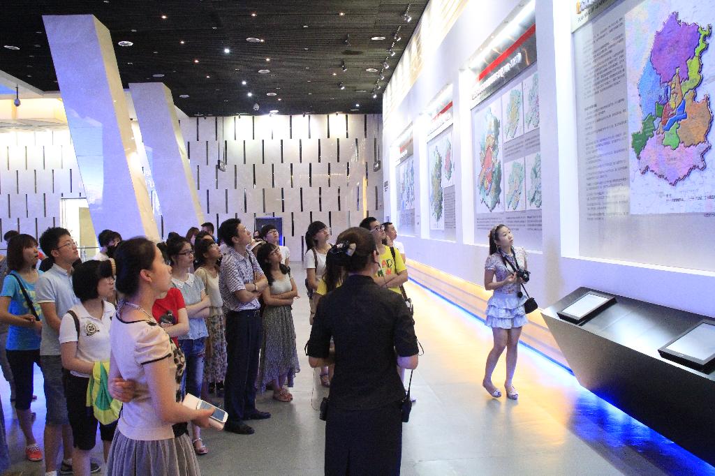 离开沈飞航空博览园,我们来到实践第二站:沈阳城市规划展示馆。进入展馆序厅,映入我们眼帘的是一面坐西朝东的背景墙,墙上刻有乾隆皇帝第一次东巡祭祖时所创作的“盛京赋”。进入展厅,恢弘大气的“紫气东来·盛世沈阳”宣传片将有着7200年文明史、2300年建城史的沈阳展现在我们面前。总体规划展区展示了沈阳的历次城市规划以及这座城市带给我们的珍贵记忆,基础设施专项规划展区详细列举了这座城市的现代文明发展状况。接下来,我们依次参观了环境建设样板城规划展区,现代建筑产业规划展示区,优势企业示范项目,沈阳经济区展区,文化产业及设施展区,了解了商业繁华的沈河,文化浓郁的皇姑,工业文明的铁西,“汽车之城”的大东、蓬勃发展的沈北新区、风景秀丽的棋盘山等九个区。金廊银带交相辉映,城市文明日新月异,踏着全面振兴的铿锵足音,沈阳必定传承历史荣耀、铸就新的辉煌。