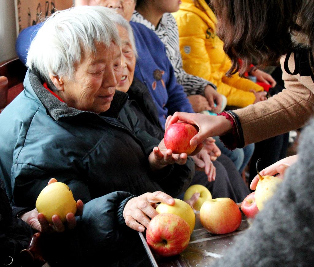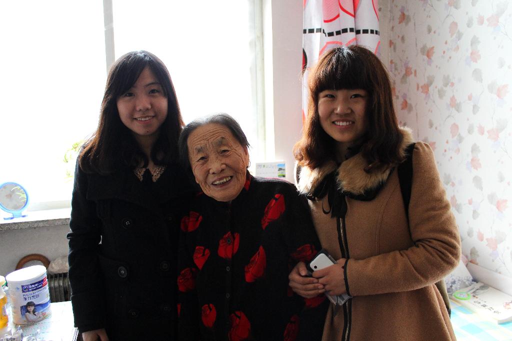 上午九时,同学们来到敬老院,立即投入到扫雪、擦窗等义务劳动中。随后,大家纷纷走入老人们的房间,和老人促膝交谈,倾听老人过去的经历,讲给他们学校里有趣的故事,老人们时而露出会心的笑容,时而进行热切的评论。随后,同学们为老人表演了精心准备的文娱节目:男生独唱《草原上升起不落的太阳》高亢辽阔,朝鲜族女生《三只小熊》俏皮可爱,集体合唱《感恩的心》传达给老人们爱的心意,幽默的小品让笑声在整个表演厅内回旋……