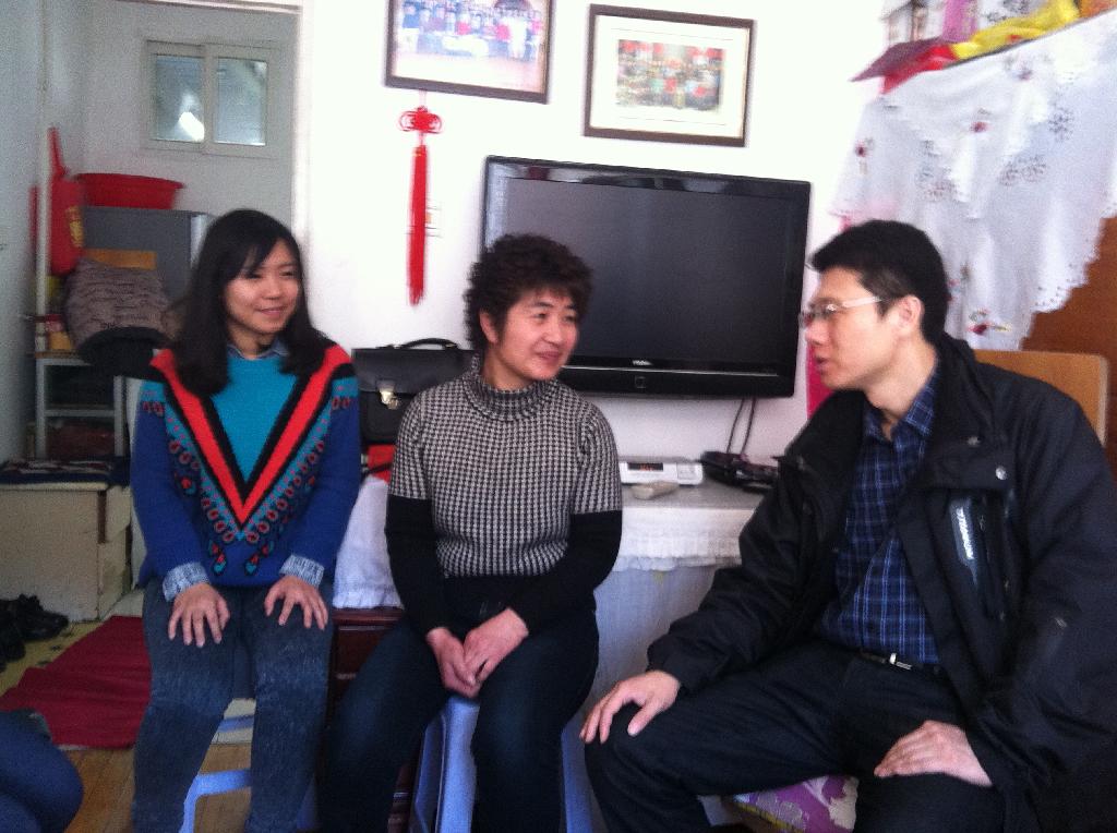 2013年2月22日清晨,在外国语学院党委副书记兼副院长李海波的带领下,院团委书记赵跃、学生党支部书记宋殿娇以及辅导员张晶晶四人前往郭晓明家中家访。郭晓明是我院2012级新生,和大多数学生一样,半年的大学生活是其乐此不疲的话题,但对于未来发展,她经常感到迷茫。我们向家长如实反映了学生在校期间的各方面表现,她的父母向我们咨询了德语专业出国和考研等方面的具体问题。郭晓明的父母和奶奶对她寄予了很高的期望,希望其在“热爱祖国,孝敬父母,关爱他人”的基础上能够学有所成。我们认真倾听了学生和家长的心声,并就郭晓明同学未来的职业生涯规划进行了深入的探讨,同时希望她能尽快确定自己的目标,踏踏实实地努力学习。