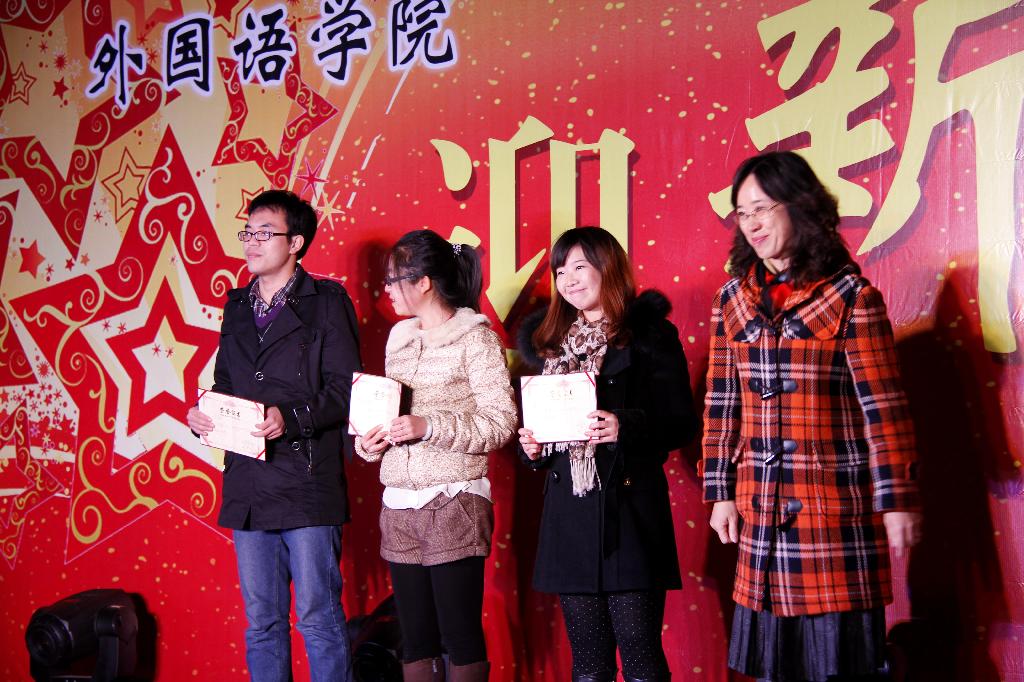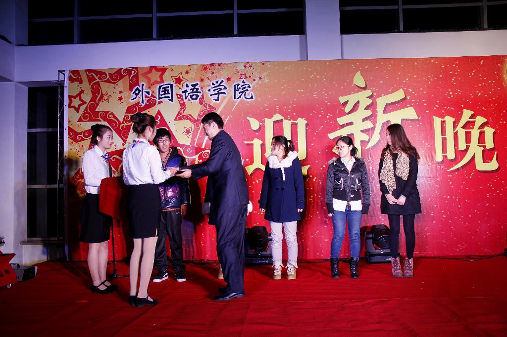 舞动青春自信飞扬,唱出年轻炫彩华章。2012年11月12日17:30,外国语学院2012级迎新晚会在文华楼一楼大厅璀璨上演,外国语学院院长周洁教授、外国语学院党委副书记兼副院长李海波、外国语学院副院长于丽萍教授、院团委书记赵跃、学生党支部书记宋殿娇以及辅导员张晶晶与外国语学院500多名同学共同观赏了一场洋溢着青春气息的视听盛会。