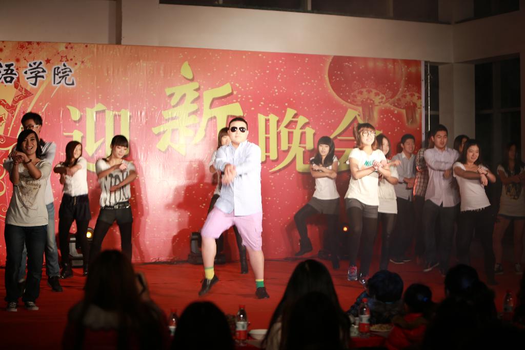 随着火热的《江南style》音乐响起,外国语学院2012级迎新晚会揭开华美面纱。首先,院长周洁教授用英、日、俄、德、法五种语言向大家亲切问候,并以标准流利的英文做晚会致辞。她希望2012级新同学在博雅厚重的辽大潜心读书,以鹰击长空之势锐意进取,志存高远,心存感恩,为梦想扎实努力,快乐前行。