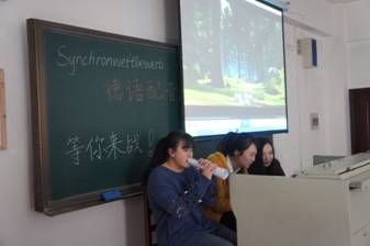 2018年4月1日上午“德语版‘声临其境’——一言不合就配音德语配音大赛选拔赛”在博文楼215教室精彩开战。本次选拔赛优胜选手将代表辽宁大学赴京参加2018 年“人民网杯”高校德语配音邀请赛。比赛分为自选片段配音和即兴配音两部分,由德语系全体教师担任评委。参赛选手来自德语系三年级和四年级的同学,赛务组和主持人由二年级同学担任。