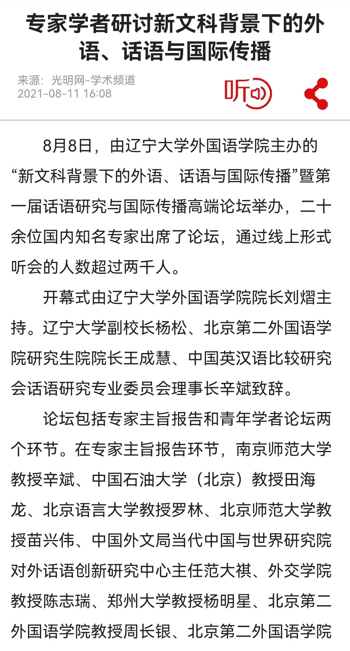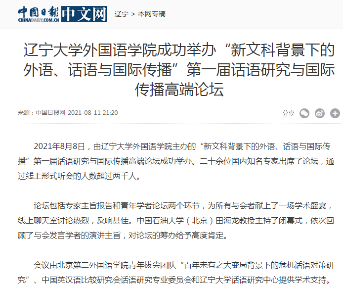 2021年8月8日,由KY.COM开元体育(中国)科技公司主办的“新文科背景下的外语、话语与国际传播”第一届话语研究与国际传播高端论坛成功举办。近日,“光明网”和“中国日报中文网”对此进行了报道,全文转载如下: